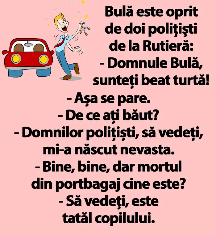 – Domnilor polițiști, să vedeți, mi-a născut nevasta.