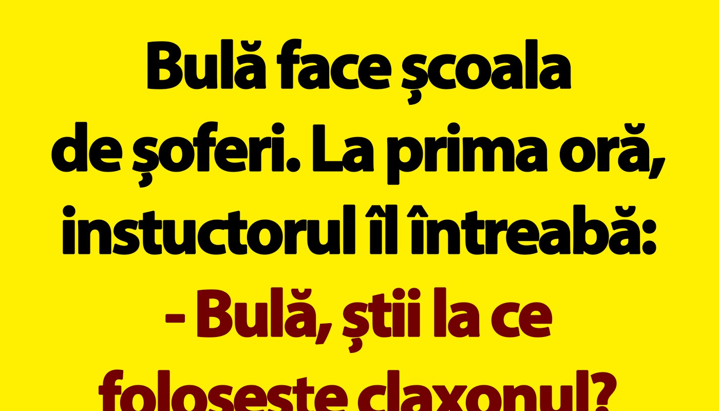 Bulă face școala de șoferi. La prima oră, instuctorul îl întreabă: