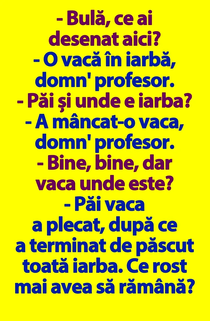 Sâmbătă, Gândul vă delectează cu un nou banc, „marca Bulă”.  De data aceasta, Bulă este la ora de desen. Ce a desenat însă Bulă, aflați în rândurile de mai jos!