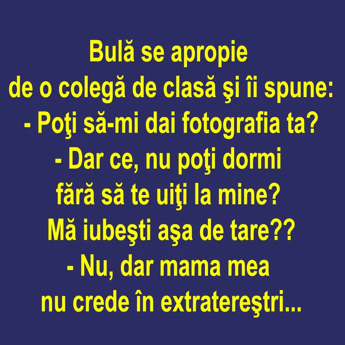Bulă se apropie de o colegă de clasă şi îi spune: