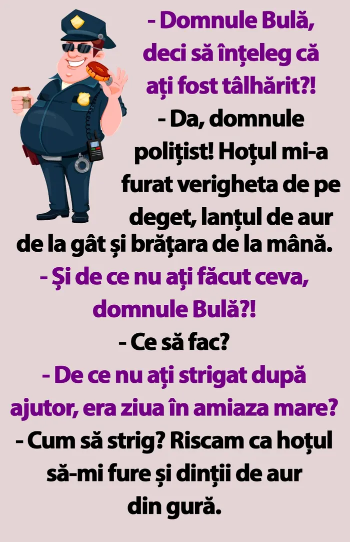 – Domnule Bulă, deci să înțeleg că ați fost tâlhărit?!