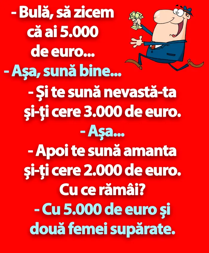 – Și te sună nevastă-ta și-ți cere 3.000 de euro.