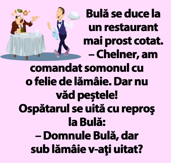 – Domnule Bulă, dar sub lămâie v-aţi uitat?