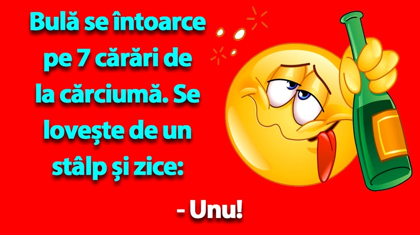 Pentru azi, 14 mai, GÂNDUL îți oferă un banc amuzant care te va însenina. Ziua trece mai ușor când zâmbești, nu-i așa?! Banc: Bulă se întoarce pe 7 cărări de la cârciumă.