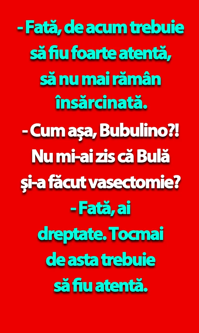 – Cum așa, Bubulino?! Nu mi-ai zis că Bulă și-a făcut vasectomie?