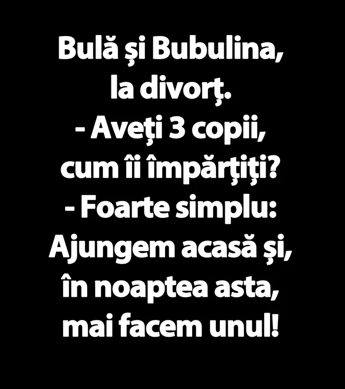 Bancul de joi: Bulă și Bubulina, la divorț.