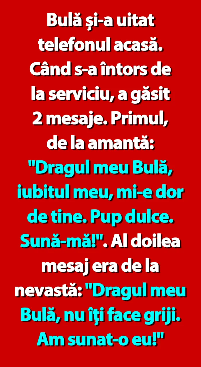 Bulă și-a uitat telefonul acasă. Când s-a întors de la serviciu, a găsit 2 mesaje.