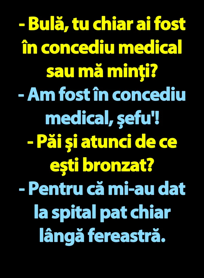 – Bulă, tu chiar ai fost în concediu medical sau mă minți?