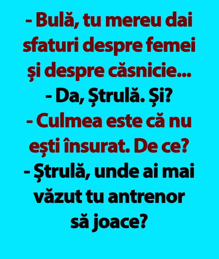 – Bulă, tu mereu dai sfaturi despre femei și despre căsnicie…