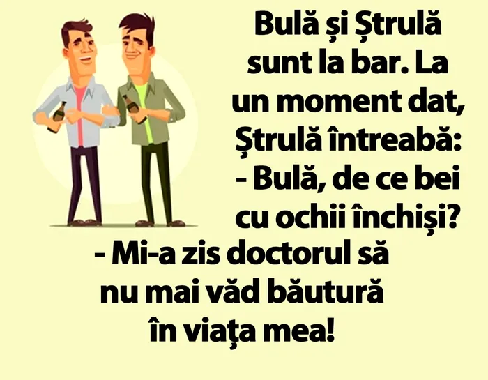– Bulă, de ce bei cu ochii închiși?