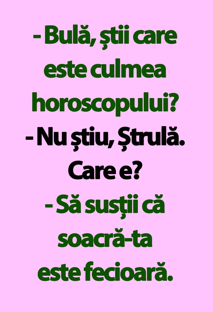 Bancul din această dimineață are o tentă astrologică și este cu Bulă și Ștrulă. Citește-l și află ce curiozitate are cel din urmă…
