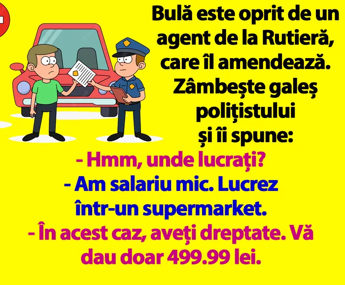 – Domnule polițist, nu credeți că 500 de lei amendă este cam mult?