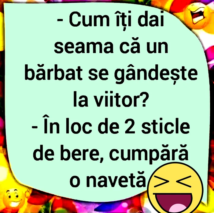 Pentru azi, sâmbătă, 15 martie, GÂNDUL.RO v-a pregătit un banc de nota 10. Tu crezi că îți poți da seama cum se gândește un bărbat la viitor? Spor la râs și voie bună!