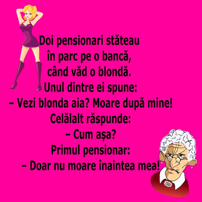 Doi pensionari stăteau în parc pe o bancă, când văd o blondă. Unul dintre ei spune: