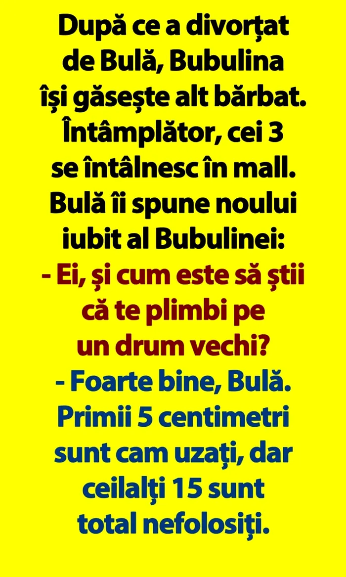 După ce a divorțat de Bulă, Bubulina își găsește alt bărbat. Întâmplător, cei 3 se întâlnesc în mall. Bulă îi spune noului iubit al Bubulinei: