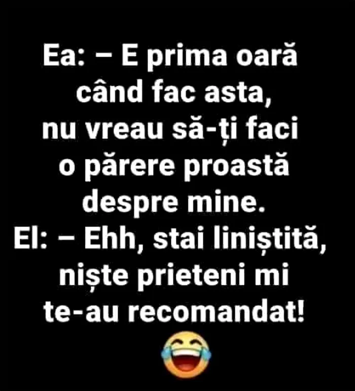 Ea: – E prima oară când fac asta, nu vreau să-ți faci o părere proastă despre mine.