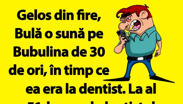 Gelos din fire, Bulă o sună pe Bubulina de 30 de ori, în timp ce ea era la dentist.