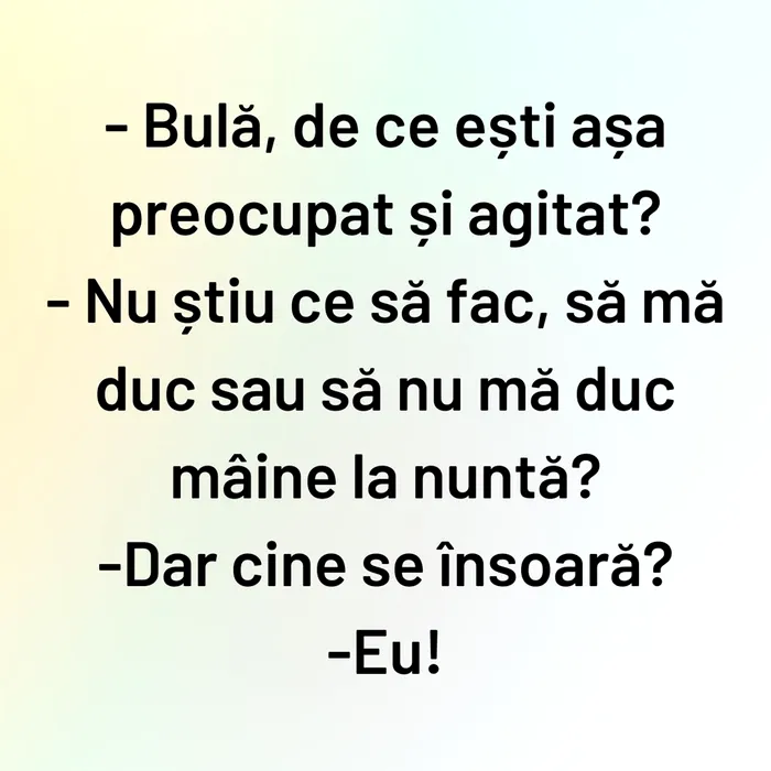 – Nu știu ce să fac, să mă duc sau să nu mă duc mâine la nuntă?