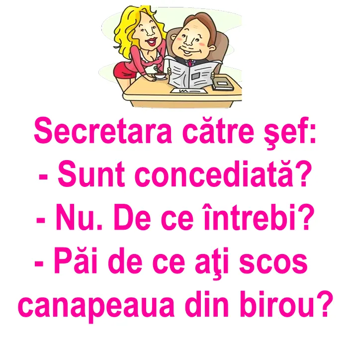 – Păi de ce aţi scos canapeaua din birou?