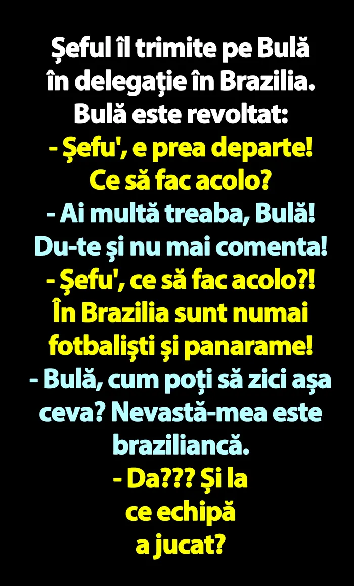 – Bulă, cum poți să zici așa ceva? Nevastă-mea este braziliancă.