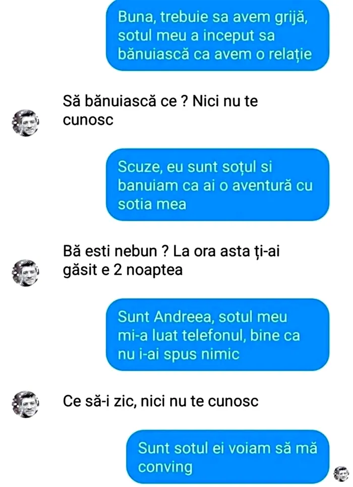 – Sunt Andreea, soțul mi-a luat telefonul, bine că nu i-ai spus nimic.