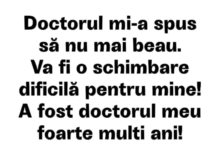 Bancul de dumincă. „Doctorul mi-a spus să nu mai beau!”