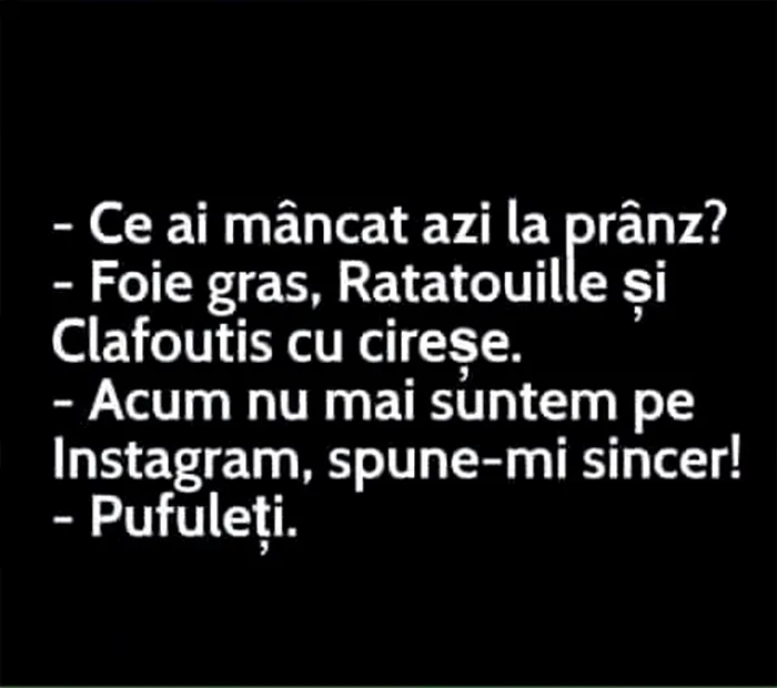 – Acum nu mai suntem pe Instagram, spune-mi sincer!