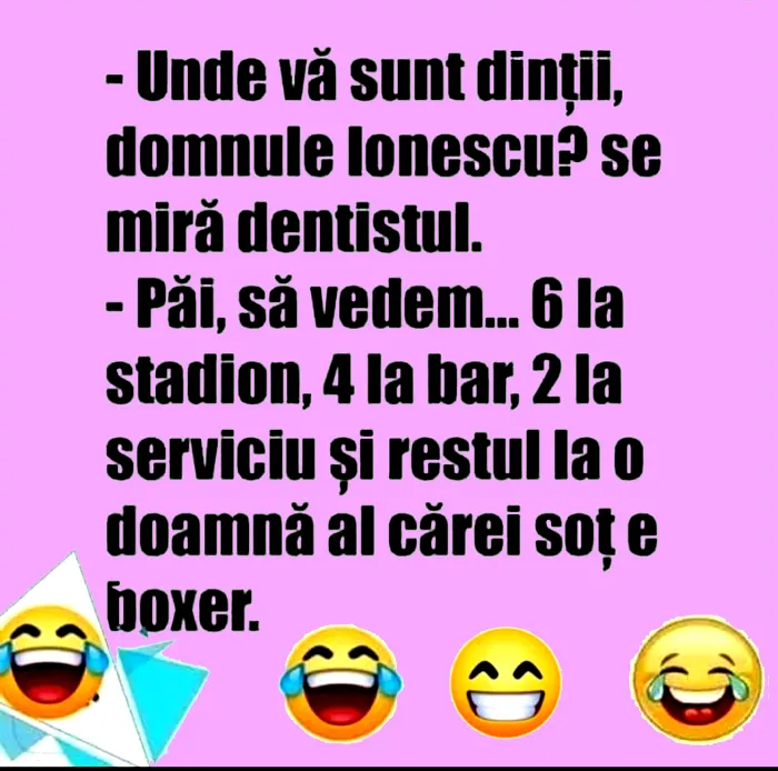 Unde vă sunt dinții, domnule Ionescu? se miră dentistul.