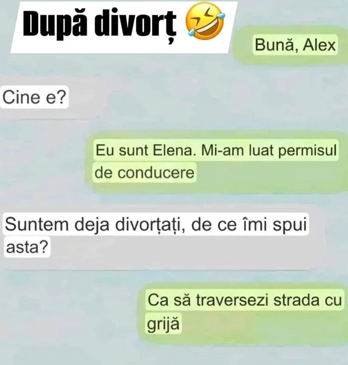 Începe ziua de joi, 22 august, cu un banc care o să-ți însenineze dimineața. Dialog amuzant între doi foști soți despre mașini și... pericolele din trafic.