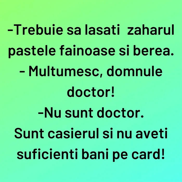 -Nu sunt doctor. Sunt casierul și nu aveți suficienți bani pe card!