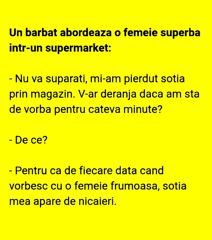 Citește bancul de joi, 26 septembrie, și află de ce un bărbat a abordat o femeie superbă într-un supermarket.