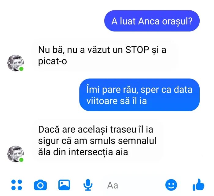 – Nu bă, nu a văzut un STOP și a picat-o.