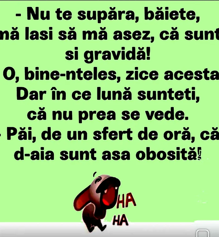 – Nu te supăra, băiete, mă laşi să mă aşez, că… sunt şi gravidă!