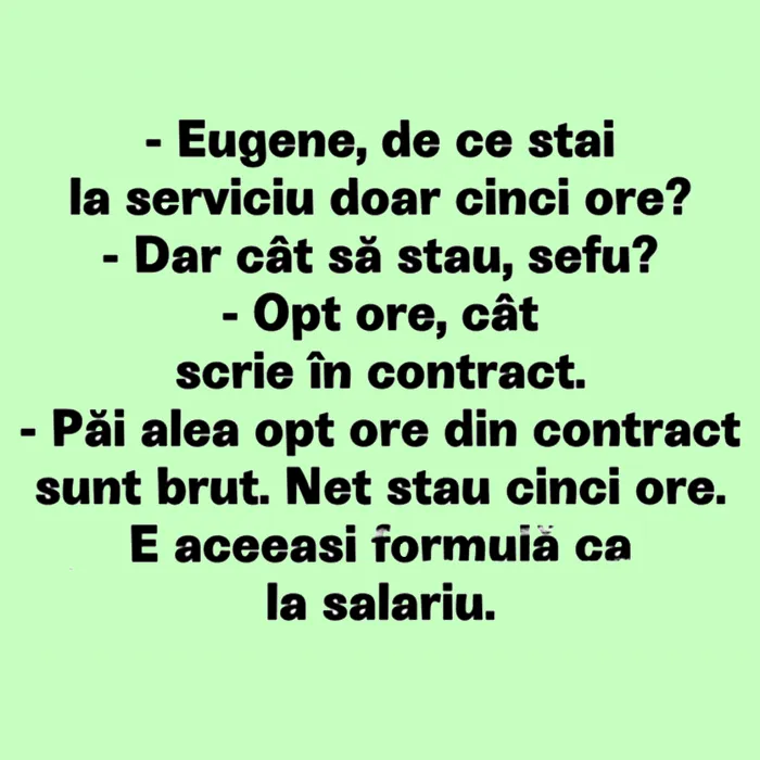 – Eugene, de ce stai la serviciu doar 5 ore?
