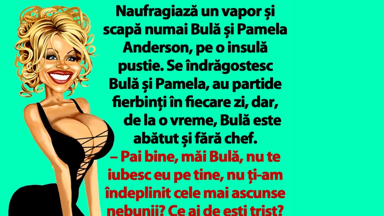 Naufragiază un vapor și scapă numai Bulă și Pamela Anderson, pe o insulă pustie. Se îndrăgostesc Bulă și Pamela, au partide fierbinți în fiecare zi, dar, de la o vreme, Bulă e abătut și fără chef.