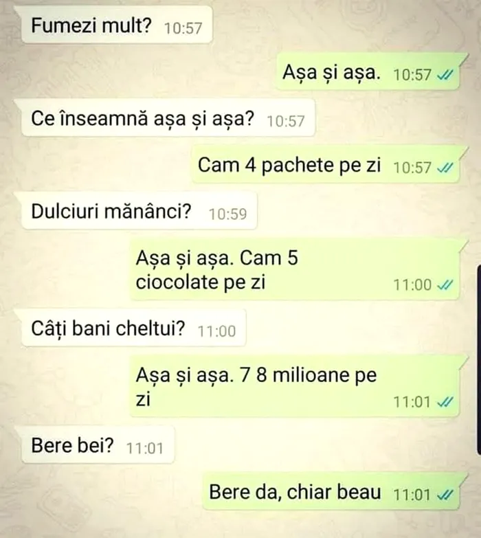– Așa și așa. Cam 5 ciocolate pe zi.