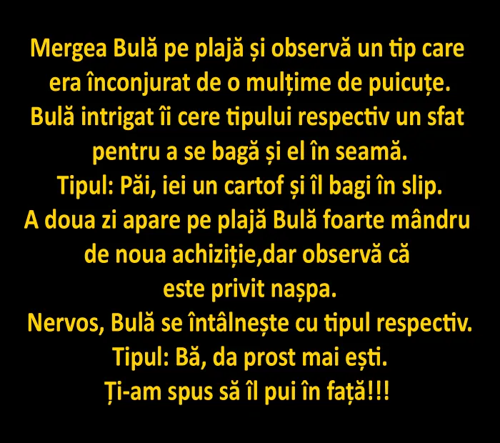Mergea Bulă pe plajă și observă un tip care era înconjurat de o mulțime de puicuțe.