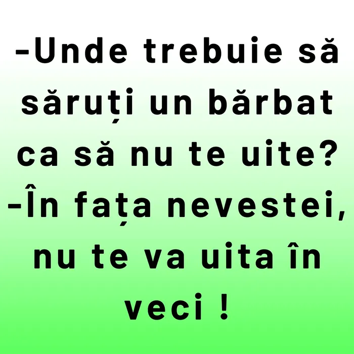 – Unde trebuie să săruți un bărbat ca să nu te uite?