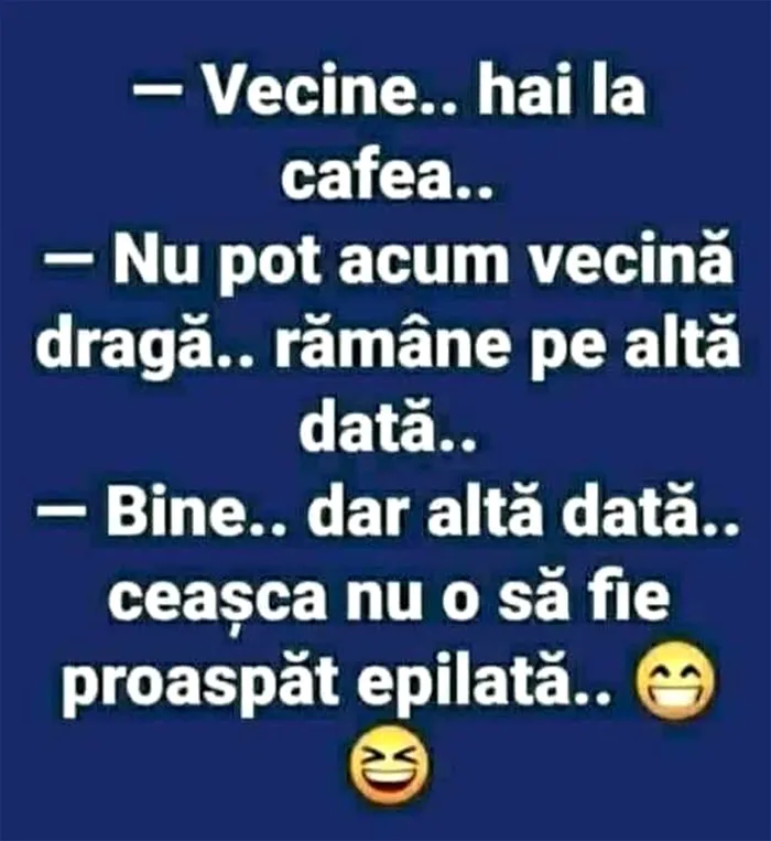 – Bine.. dar altă dată.. ceașca nu o să fie proaspăt epilată.