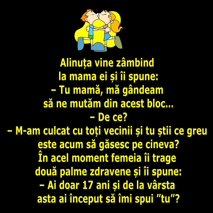 – Ai doar 17 ani și de la vârsta asta ai început să îmi spui „tu”?