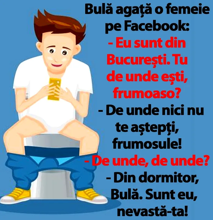 La mijlocul săptămânii, GÂNDUL.RO vă propune bancul de miercuri. Află pe cine a reușit să agațe Bulă pe Facebook, de fapt.