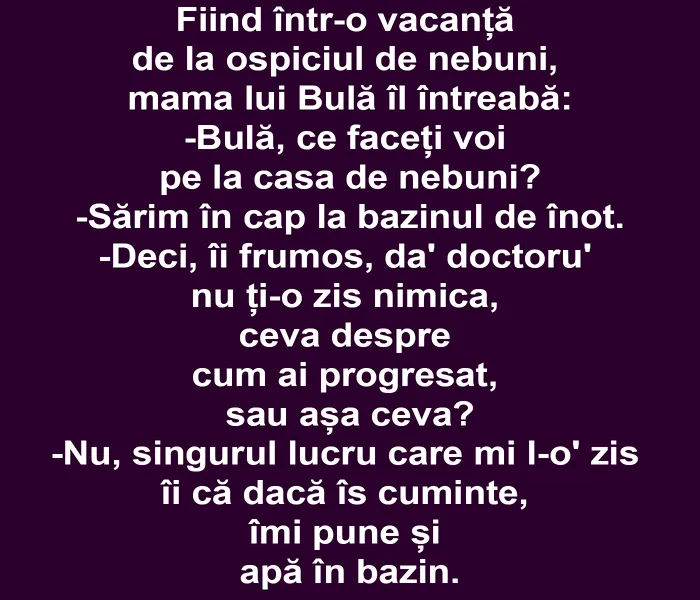 -Bulă, ce faceți voi pe la casa de nebuni?