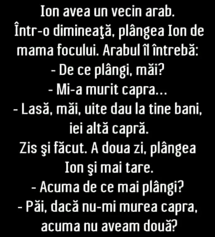 Într-o dimineață, plângea Ion de mama focului. Arabul îl întreabă: