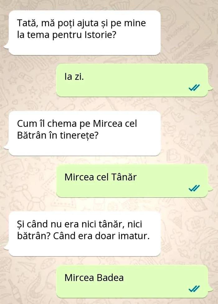 Tată, mă poți ajuta și pe mine la tema pentru istorie?