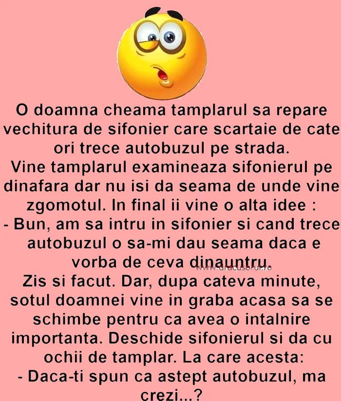 – Bun, am să intru în șifonier și când trece autobuzul o să-mi dau seama dacă e vorba de ceva dinăuntru.