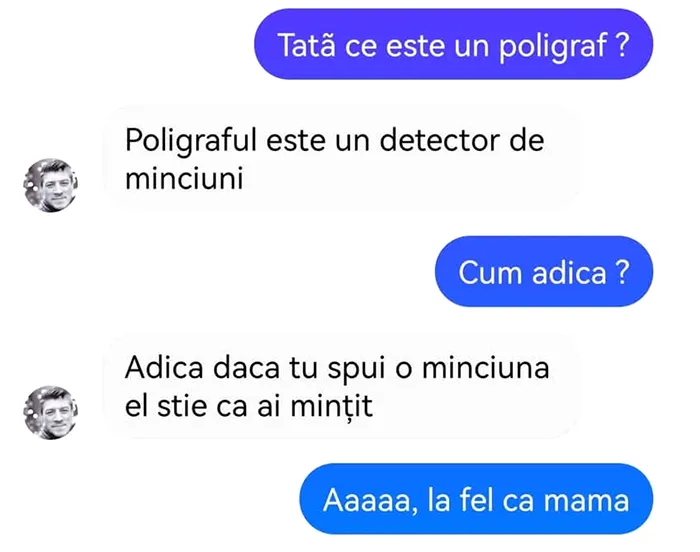 Hai să începem ziua de miercuri cu zâmbetul pe față! Pentru asta, GÂNDUL ți-a pregătit un banc bun: ce înțelege copilul că este un poligraf.