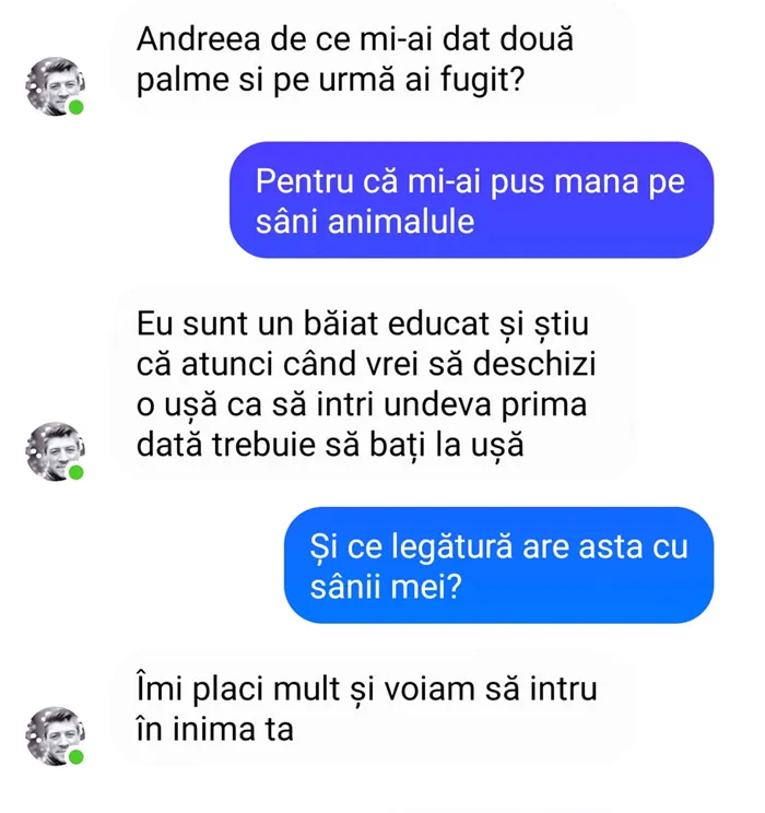 -Andreea, de ce mi-ai dat două palme și pe urmă ai fugit?!