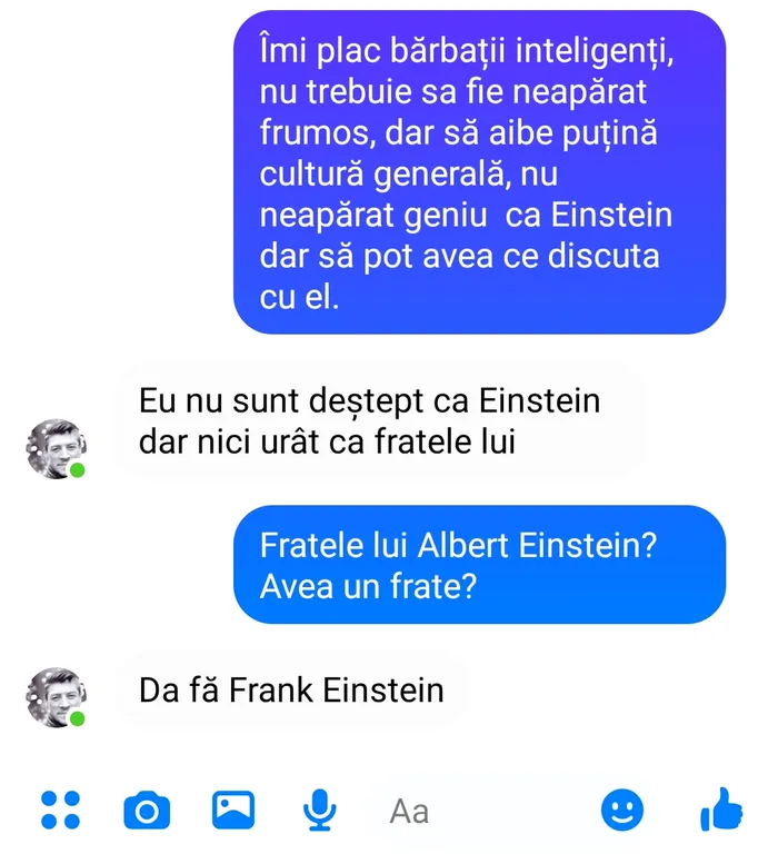 – Eu nu sunt deștept ca Einstein, dar nici urât ca fratele lui.