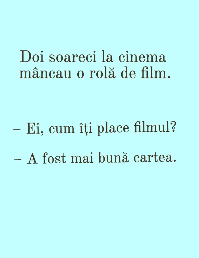 Bună dimineața, a venit weekend-ul și, odată cu el, s-a întors și voia bună! Să începem dimineața de sâmbătă cu un banc amuzant – șoarecii și rola de film.