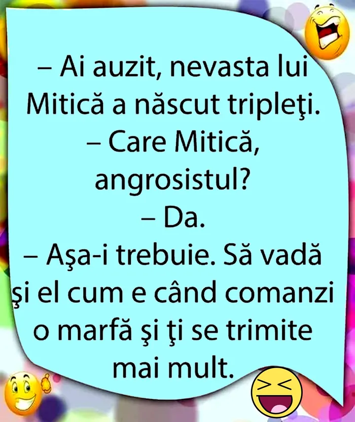 -Ai auzit? Nevasta lui Mitică a născut tripleți.